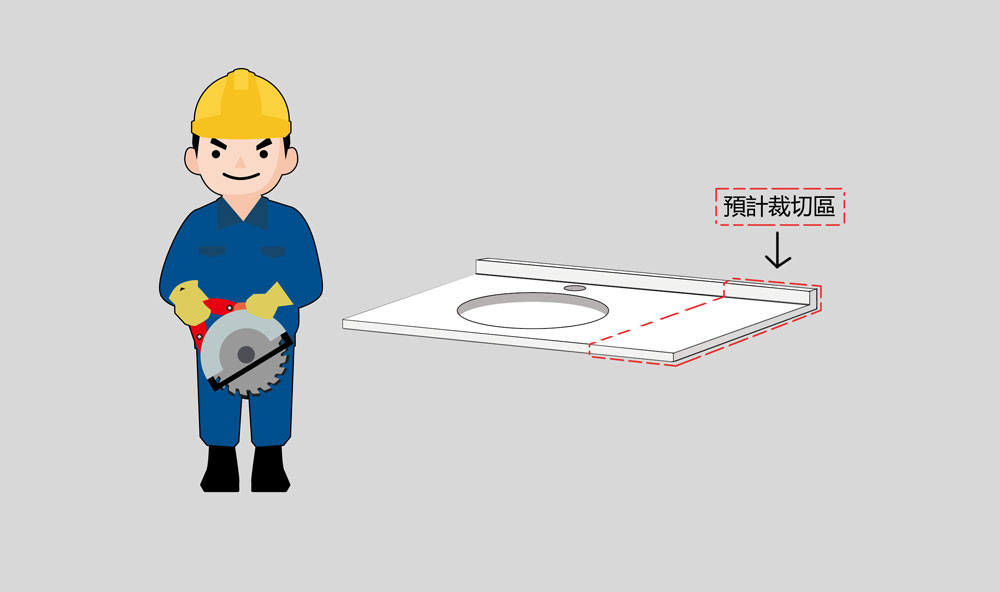 本廠的人造大理石,裁切斷面粗糙,有氣泡孔,不可能拋光磨亮,
