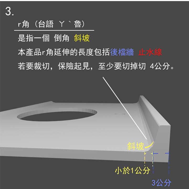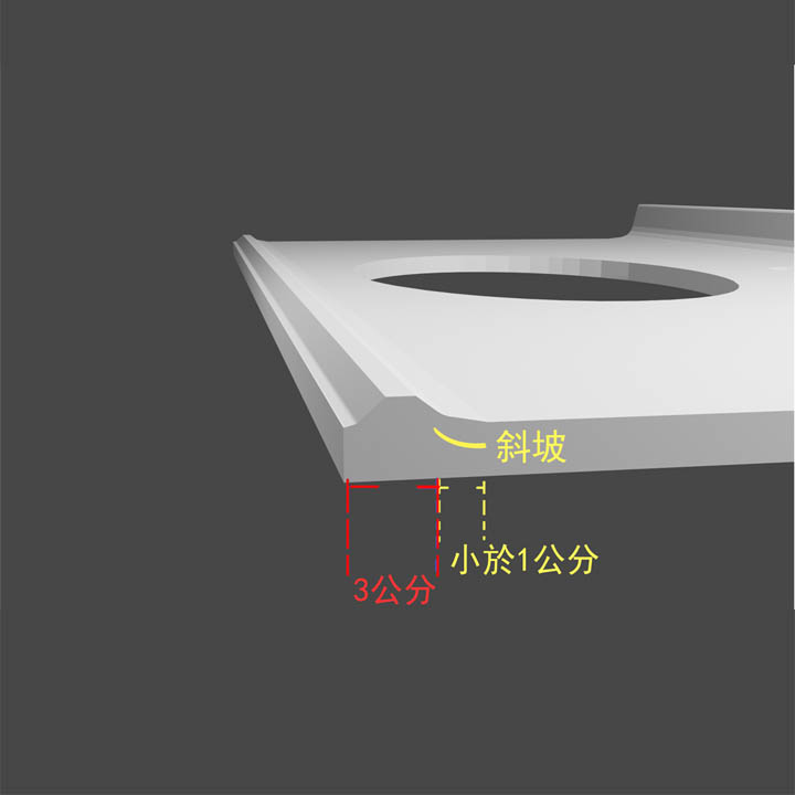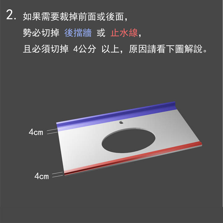 如上圖3. 如果不切4公分,台面的外觀 會有明顯的斜坡,影響美觀。