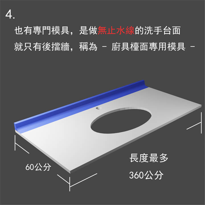 圖4-廚具檯面專用模具- 補充說明 : 一般用途是做於廚房流理檯,也可做成洗手台面。