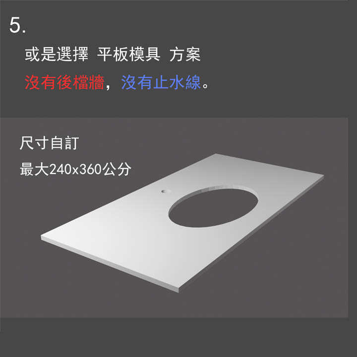 如上圖5 -平板模具- 洗手台面可省去裁切工序