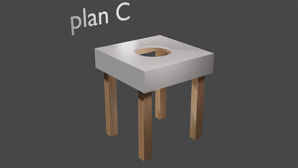 planC(方案C) 台面直接下放浴櫃方案,也是常見方式。