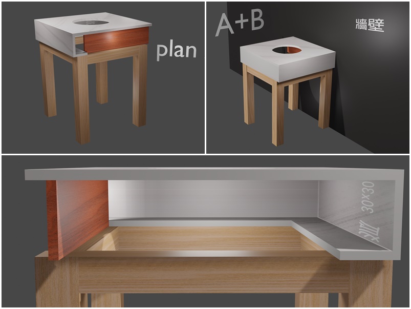 planA+B (方案A+B)結合上述兩種方案,加工後較為美觀,靠牆可用方案。