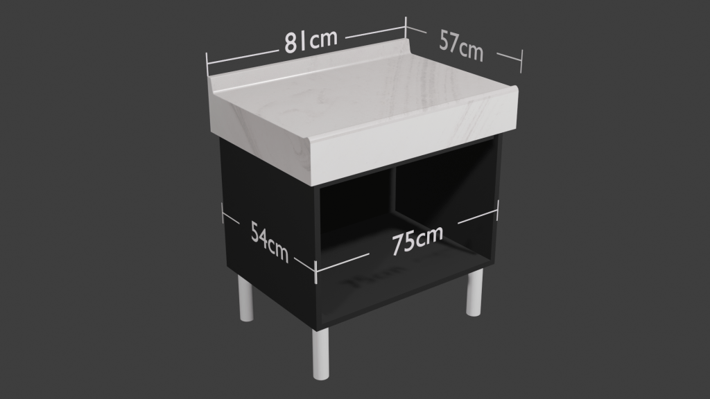 planA (方案A) 台面下方;內折成[ㄇ型],兩側無靠牆的加工方式。