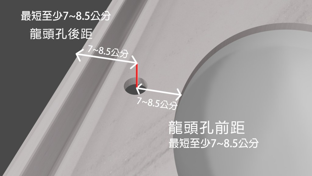 4-3.龍頭孔距離多少? 通常是下嵌式洗手台,要特別注意水龍頭孔距離,下列圖僅說明下嵌式洗手台孔距。 非專業人士,建議訂製台面,龍頭孔"最短距離"參照以上尺寸 以下有圖解喔~ 圖片可左右滑動,更換圖片 槽盆的邊緣寬度,少至1.2cm,較寬的槽盆可至3cm;龍頭距離就要拉長 分享此文: 按一下即可分享至 X(在新視窗中開啟) X 按一下以分享至 Facebook(在新視窗中開啟) Facebook 喜歡 正在載入...