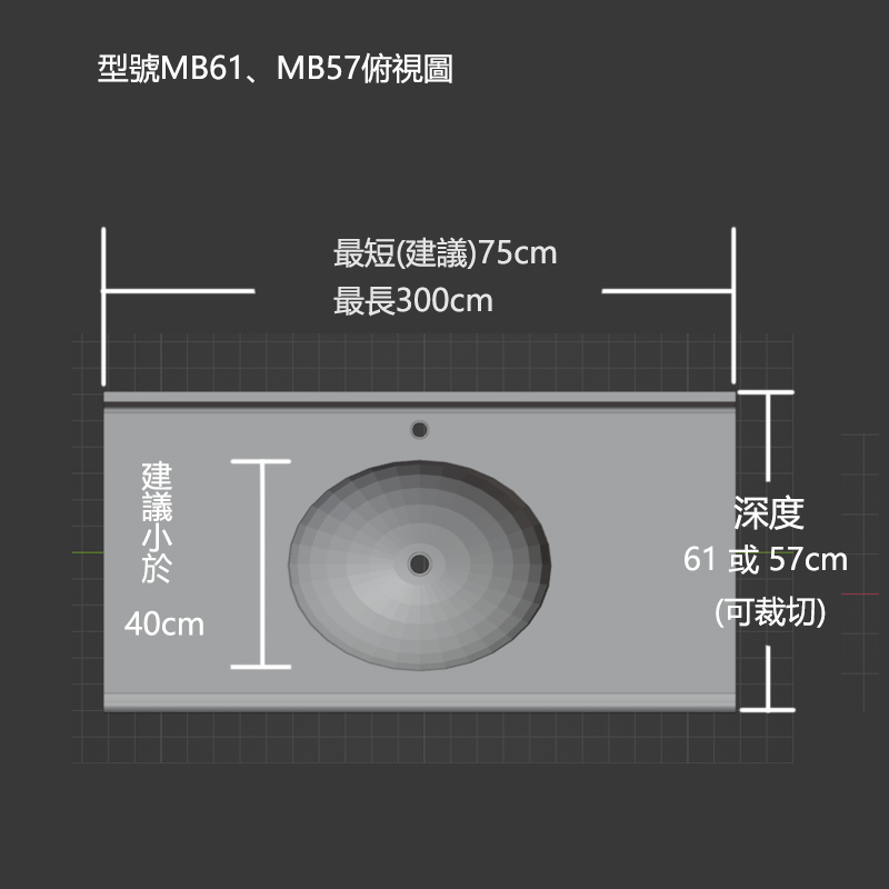 標準方形洗手台面 最多客戶首選的方形洗手台,有型號MB61、型號MB57兩種,美觀實用。 另開視窗,到3D網站觀看 3d圖操作方式 分享此文: 按一下即可分享至 X(在新視窗中開啟) X 按一下以分享至 Facebook(在新視窗中開啟) Facebook 喜歡 正在載入...